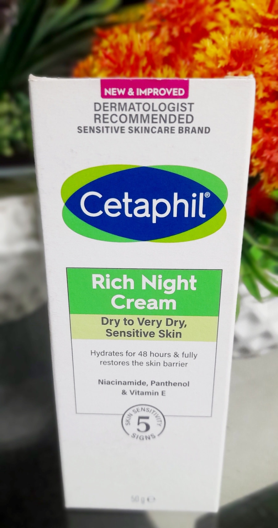Cetaphil Rich Night Cream is a replenishing, hydrating moisturizer designed for dry to very dry, and sensitive skin. It intensely rehydrates, leaving skin feeling smooth and comfortable while protecting against the five signs of skin sensitivity. The cream helps restore the skin’s natural moisture barrier, providing both immediate and long-lasting relief from dryness. It’s formulated with ingredients like Sweet Almond Oil, Niacinamide, Panthenol, and Vitamin E to hydrate and nourish the skin overnight.